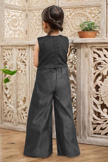Black Net, Taffeta Beads, Sequins Embroidered Sheer Top And Pant Set