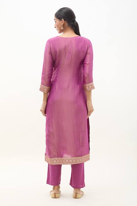 Pink Tissue, Silk, Organza Sequins, Zari, Floral Bloom Pattern Kurta Pant Set