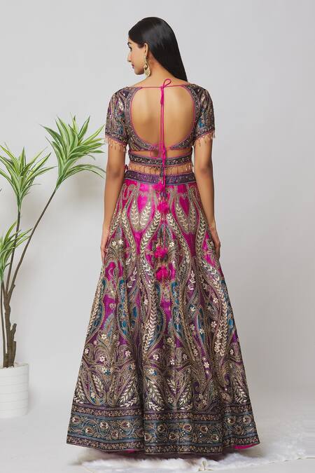 Pink Silk, Net Embroidery, Tassels, Pearls, Mirrors Floral Bridal Lehenga Set