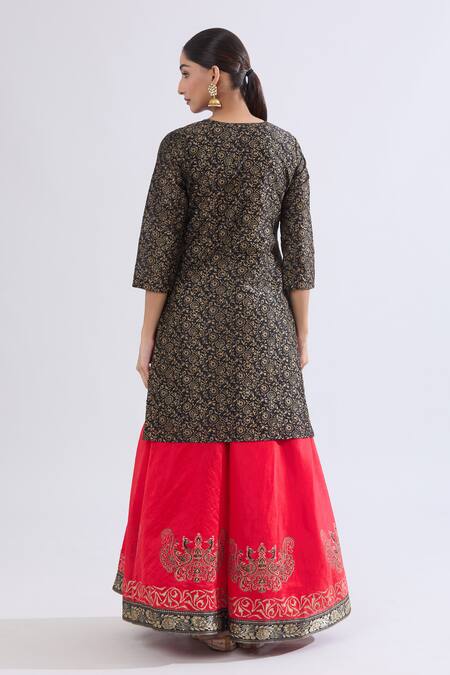 Buy_Samyukta Singhania_Black Silk Zari, Embroidery Round Neck Floral Kurta Set_Online_at_Aza_Fashions