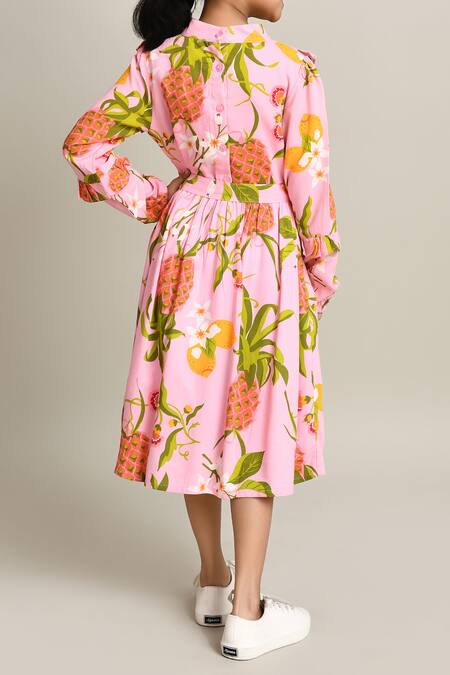 Pink Cotton Floral Print Fit And Flare Dress