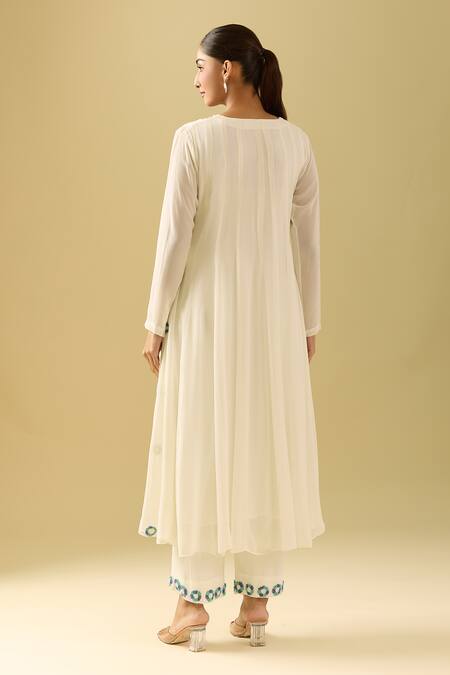 White Georgette Sequins, Beads, Embroidery Button-down Floral Anarkali Set