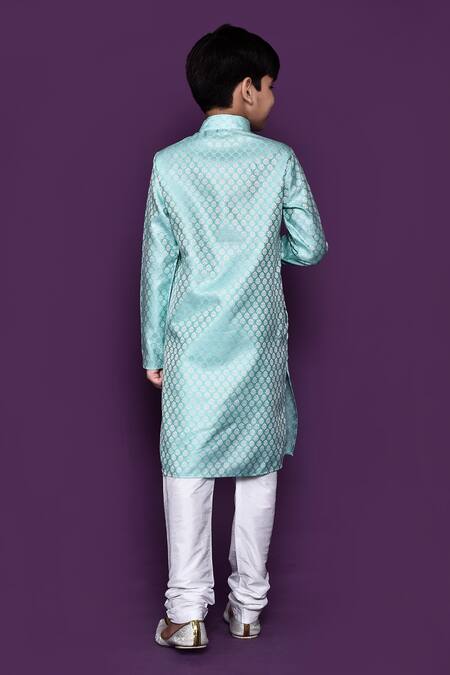 Buy_Petite Pomme_Blue Brocade, Silk, Embroidery Flower Woven Kurta Set_at_Aza_Fashions