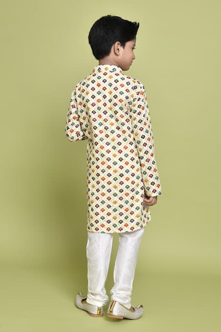 Shop_Petite Pomme_White Cotton Embroidery Geometric Thread Kurta _at_Aza_Fashions