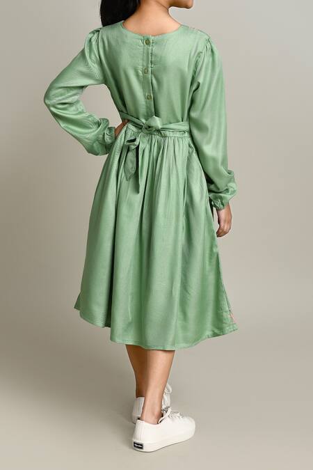 Buy_Samyukta Singhania_Green Cotton Embroidery Girls Fit And Flare Dress_Online_at_Aza_Fashions