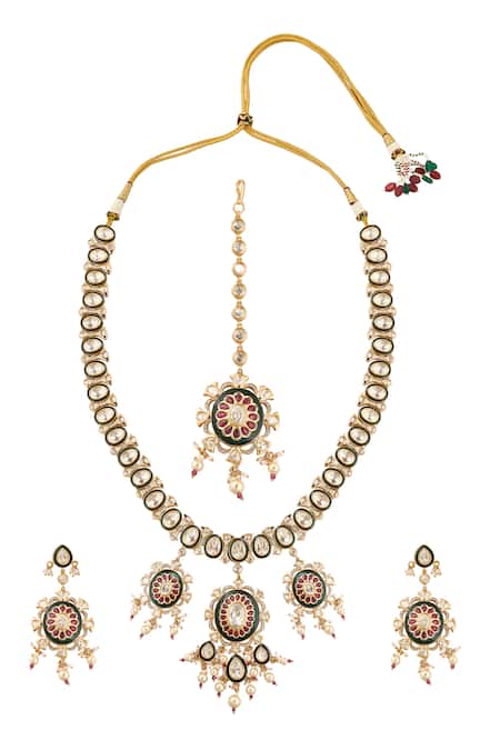 Buy_Nazaakat By Samara Singh_Gold Plated And Red Jewellery Set _Online_at_Aza_Fashions