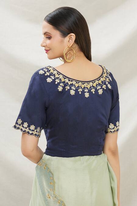 Buy_Samyukta Singhania_Blue Cotton Silklining Gota Work Blouse_Online_at_Aza_Fashions