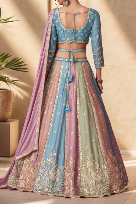 Buy_Samyukta Singhania_Multi Color Polyester, Georgette Sequins, Gradient Floral Vine Lehenga Set_at_Aza_Fashions