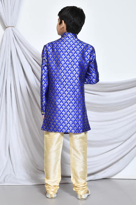 Buy_Petite Pomme_Blue Jacquard, Chanderi Asymmetric Sherwani And Churidar Set _Online_at_Aza_Fashions
