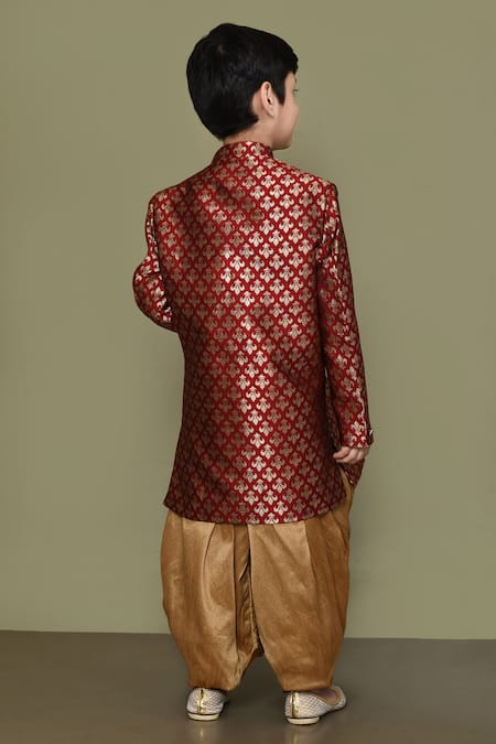 Buy_Petite Pomme_Maroon Jacquard, Silk Woven Sherwani And Patiala Pant Set _Online_at_Aza_Fashions