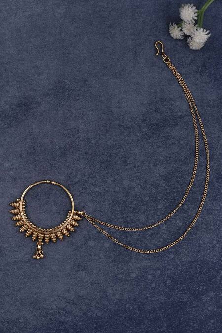 Buy_Nazaakat By Samara Singh_Gold Plated Gota Patti Kundan Embellished Nose Ring_Online_at_Aza_Fashions