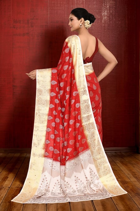 Buy_Naintara Bajaj_Red Silk Crystals Leaf Butti Woven Art Saree _Online_at_Aza_Fashions