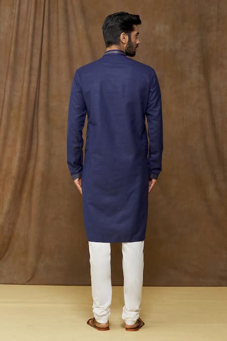 Blue Linen, Cotton Embroidery Dark Straight Kurta