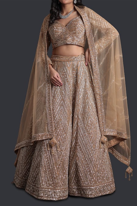 Buy_Samyukta Singhania_Gold Net Sequins, Embroidery Sweetheart Neck Classic Lehenga Set