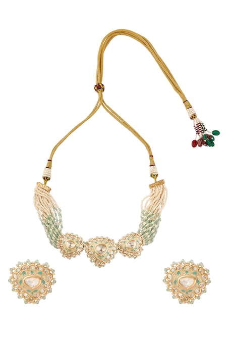 Nazaakat By Samara Singh_Cream Mint And Creme Embellished Jewellery Set _Online_at_Aza_Fashions