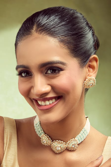 Buy_Nazaakat By Samara Singh_Cream Mint And Creme Embellished Jewellery Set _Online_at_Aza_Fashions
