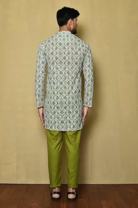 Buy_Arihant Rai Sinha_Multi Color Viscose Embroidery Mughal Pattern Kurta And Green Pant Set _Online_at_Aza_Fashions