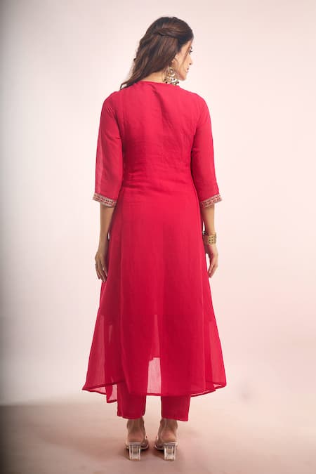 Buy_Samyukta Singhania_Red Chanderi, Shantoon Embroidery, Zari, Sequins, Lace Round Mul Kurta Set _at_Aza_Fashions