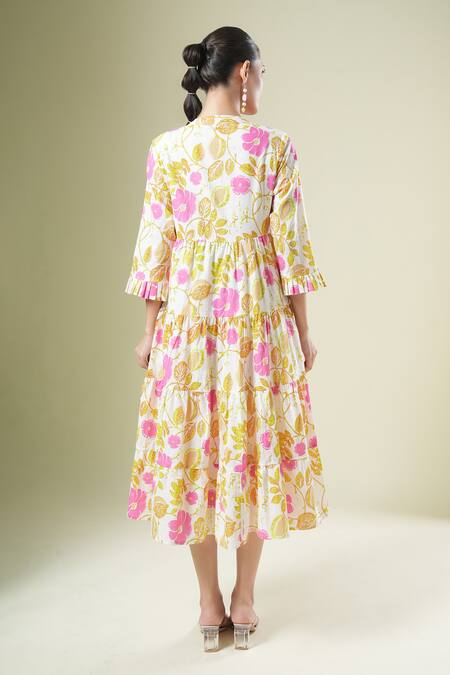 Multi color dress featuring a floral print design with a tiered silhouette