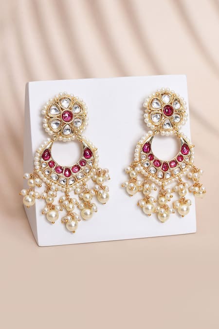 Gold and pink toned chandbalis featuring intricate kundan and pearl embellishments