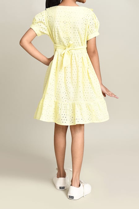 Petite Pomme_Yellow Cotton Fit And Flare Dress_at_Aza_Fashions