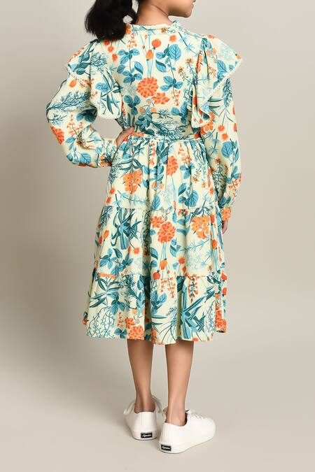 Ruffled sleeves for added volume, Tiered skirt for a playful look, Cinch waist design for a flattering fit