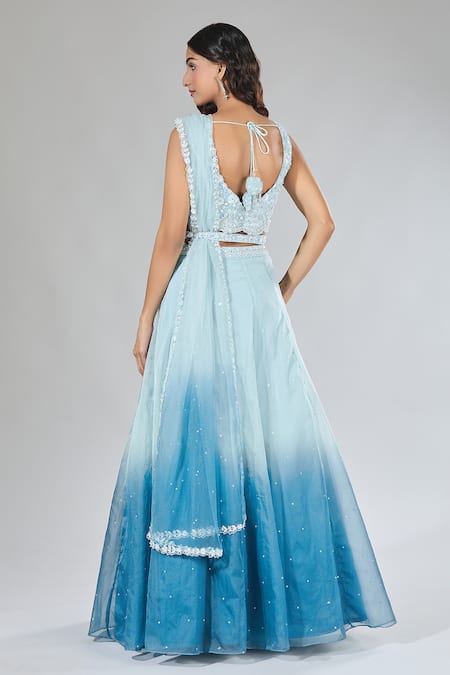 Buy_Samyukta Singhania_Blue Organza, Net Sequins, Stones, Cut Work, Embroidery Ombre Lehenga Set _Online_at_Aza_Fashions