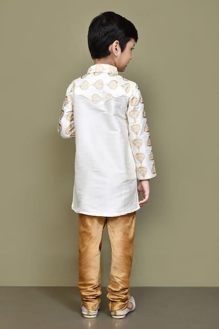 Petite Pomme_White Silk Embroidery Paisley Pattern Kurta Set _Online_at_Aza_Fashions