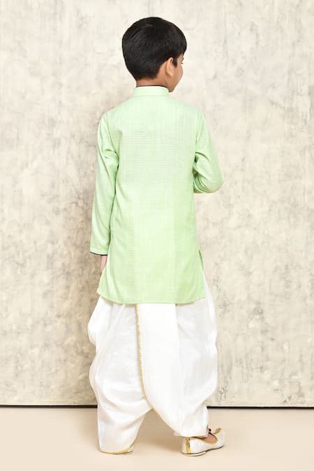 Buy_Petite Pomme_Green Cotton Piping Patterned Kurta And Dhoti Pant Set _Online_at_Aza_Fashions