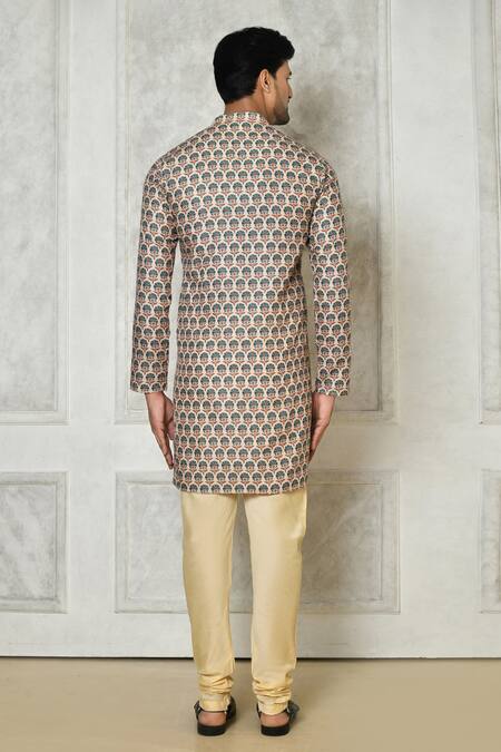 Beige Cotton Silk Print Peacock Feather Motif Kurta