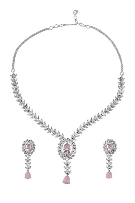 Buy_Nazaakat By Samara Singh_Pink American Diamond Necklace And Earring Set