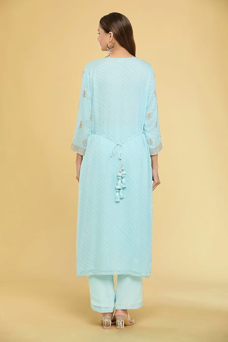 Sky Blue Georgette, Silk Embroidery Round Neck Pittan Yoke Kurta And Pant Set