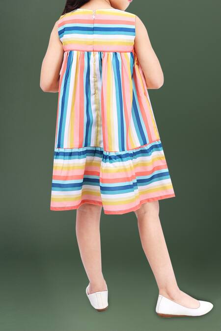 Buy_Samyukta Singhania_Multi Color Cotton Bows Striped Dress With Ruffle Hem_Online_at_Aza_Fashions