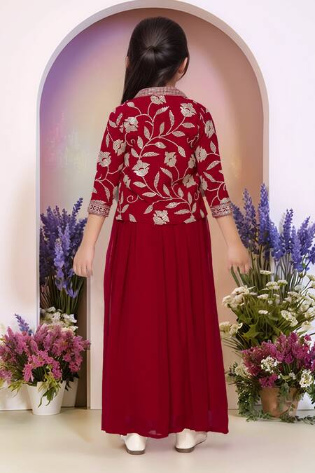 Rose Gold Georgette Embroidery Rani Pink Jacket Palazzo Set