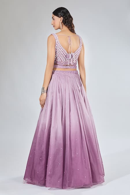 Buy_Samyukta Singhania_Purple Organza, Net Sequins, Stones Asymmetric Scatter Embroidered Lehenga Set _Online_at_Aza_Fashions