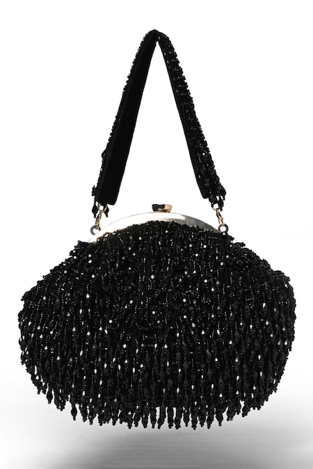 Black Beads Designer Velvet Hand-embellished Clutch Bag