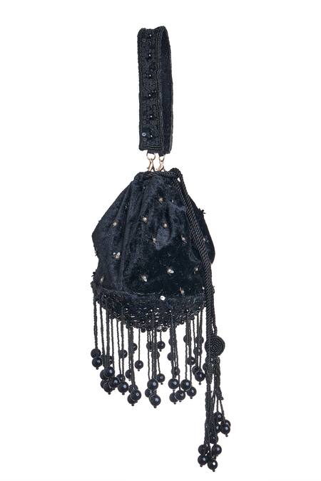 Black Pearls, Sequins And Tassel Embellished Potli Bag
