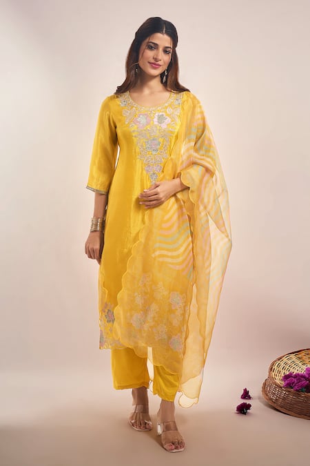 Buy_Samyukta Singhania_Yellow Tissue, Shantoon, Chiffon Embroidery, Sequins, Shimmer Floral Kurta Set _Online_at_Aza_Fashions