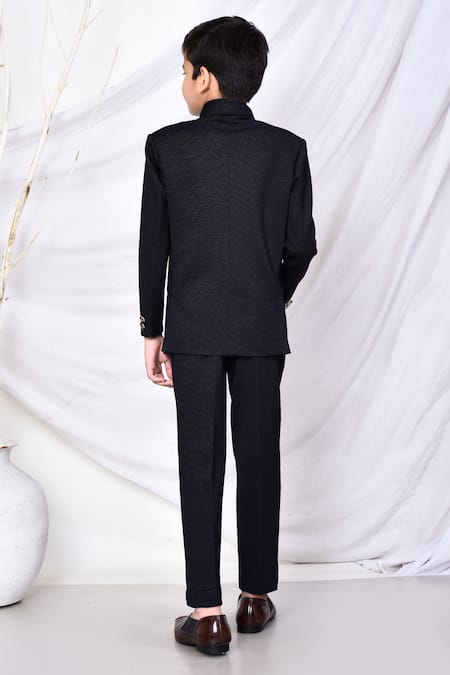 Buy_Petite Pomme_Black Cotton, Polyester Brooches Solid Textured Bandhgala Pant Set _at_Aza_Fashions