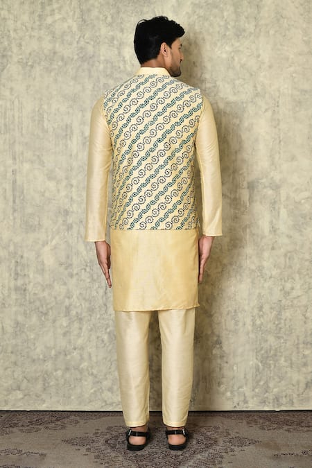 Buy_Samyukta Singhania_Beige Cotton, Silk Embroidery Spiral Bandhani Print Bundi_at_Aza_Fashions