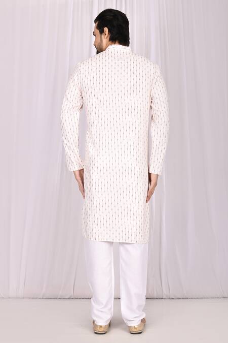 White Cotton Printed Striped Kurta Set