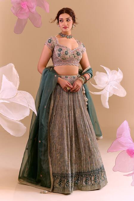 Intricate hand embroidery on blouse and lehenga, Padded blouse for added support, Can can detailing for volume in lehenga