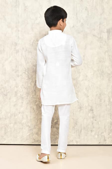 White straight kurta featuring tonal drop patterns and a Mandarin neckline