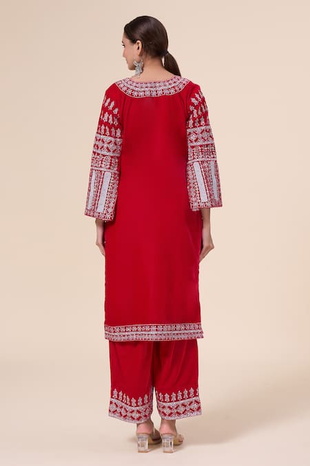 Fuchsia Velvet, Organza Embroidery, Sequins Split Zari Floral Kurta Pant Set