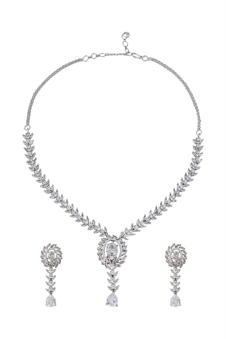Buy_Nazaakat By Samara Singh_White American Diamond Jewelry Set _Online_at_Aza_Fashions