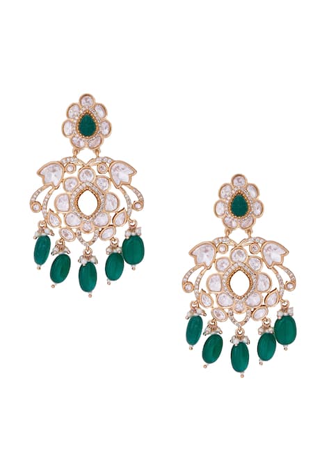 Buy_Nazaakat By Samara Singh_White And Green Dangler Earrings _Online_at_Aza_Fashions
