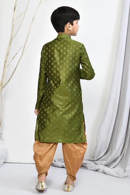 Petite Pomme_Green Brocade, Silk Embroidery Woven Floral Motif Kurta Patiala Pant Set_Online_at_Aza_Fashions