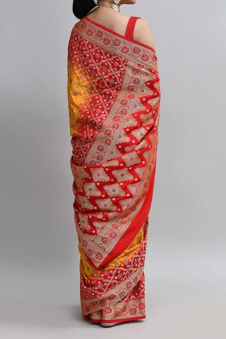 Buy_Samyukta Singhania_Yellow Silk Embroidery Banarasi Bandhej Saree Set _Online_at_Aza_Fashions