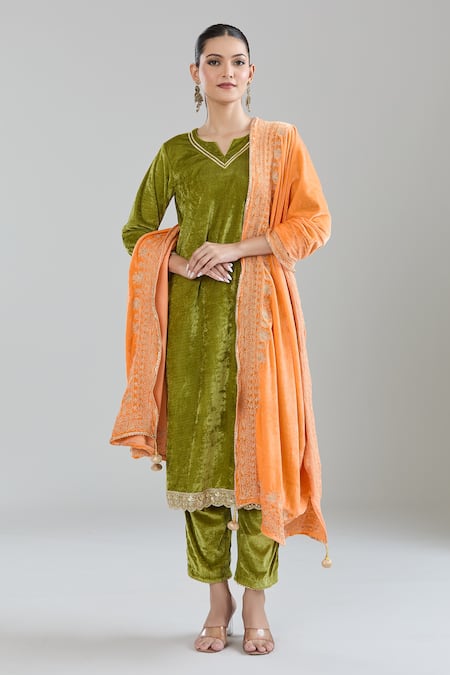 Orange Velvet Tassels Zari Embroidered Dupatta