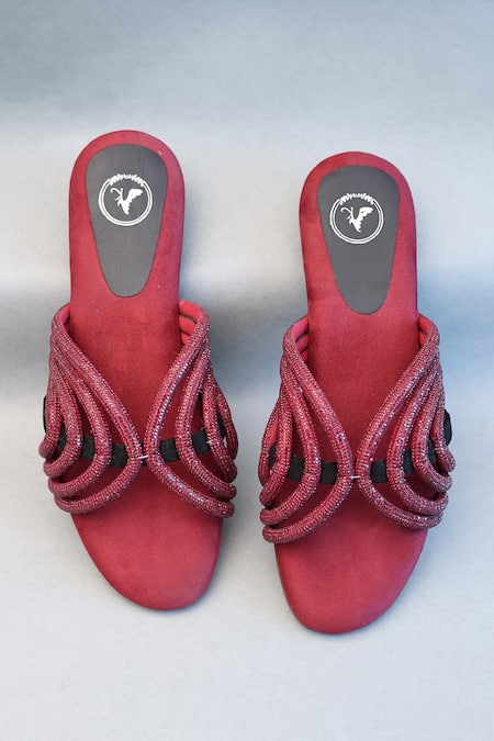 Buy_Sana K luxurious Footwear_Red Rhinestones, Crystals Gema Embellished Heels _at_Aza_Fashions